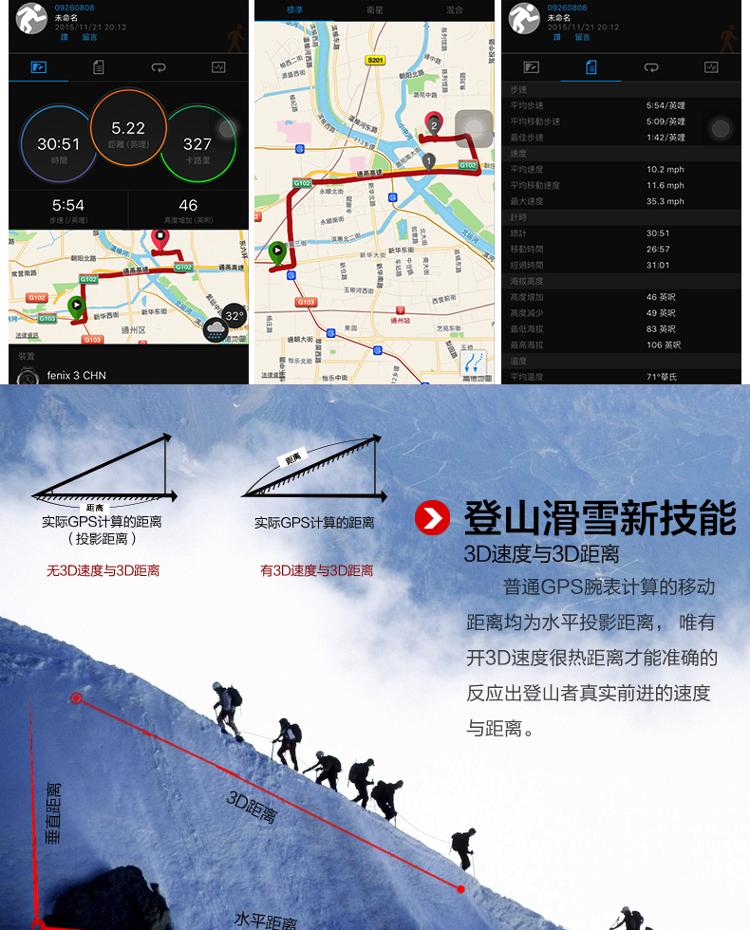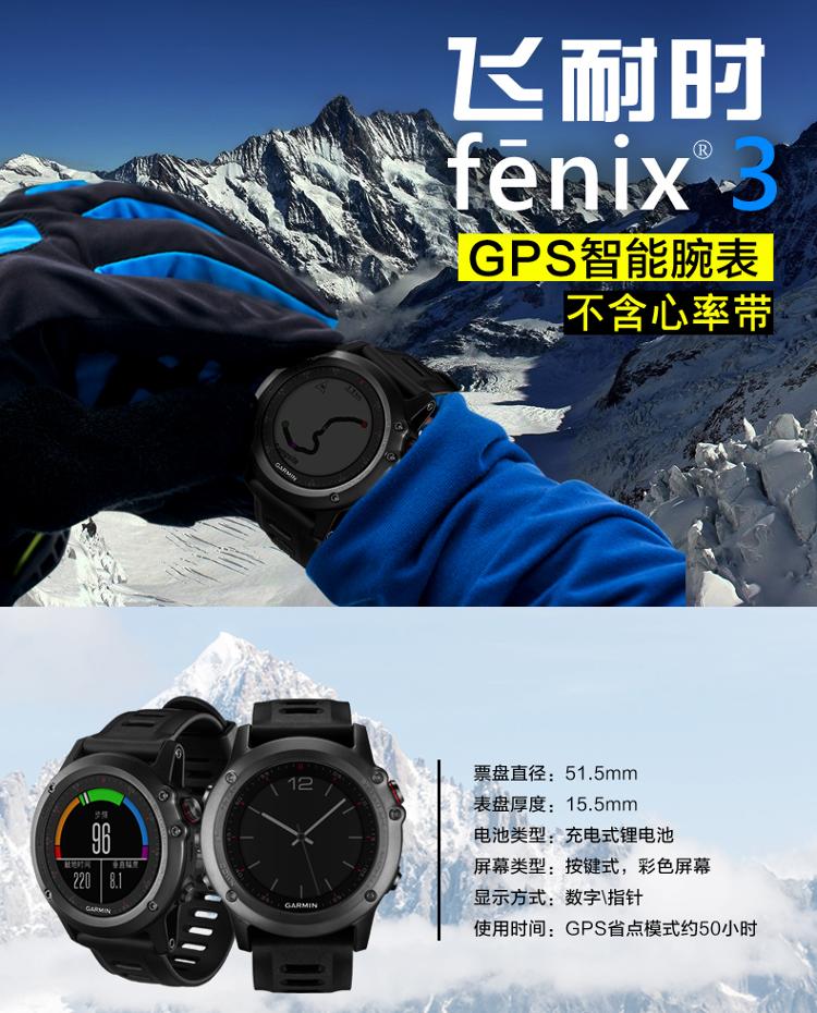 佳明(Garmin)手表 GPS多功能户外运动登山腕表男表炫黑版fenix3飞耐时3